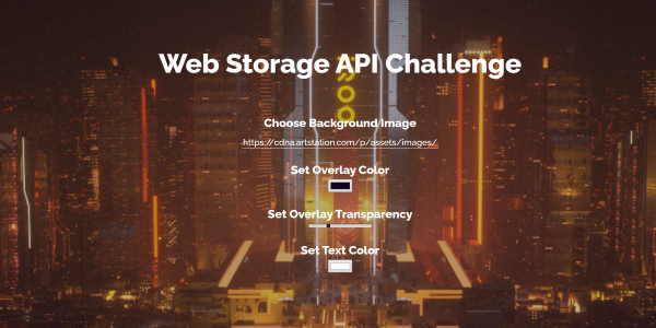 Continuer vers le siteUn autre projet Javascript qui exploite les API de stockage web des navigateurs. Ce site permet à l'utilisateur de choisir un fond d'écran, une couleur de fond ainsi que son opacité et une couleur de texte, le navigateur les garde ensuite en mémoire jusqu'à la prochaine connexion au site de cet utilisateur.…
